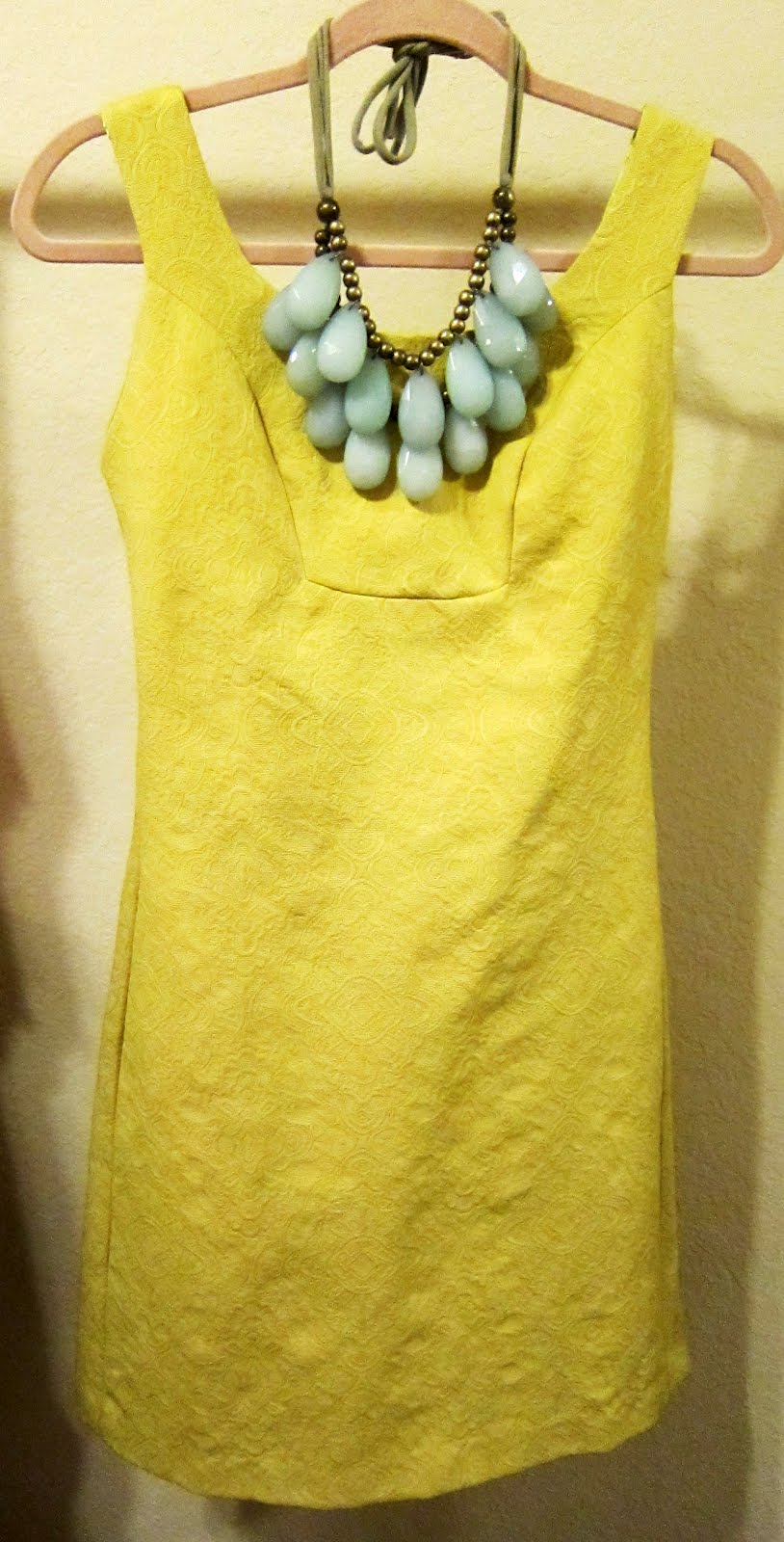 {citron dress paired with aqua necklace, both from Anthropologie}